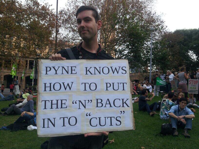 Whilst on the topic of words, it was interesting to note that some of the recent demonstrations against the Abbot government’s budget cuts included a couple of signs as follows: