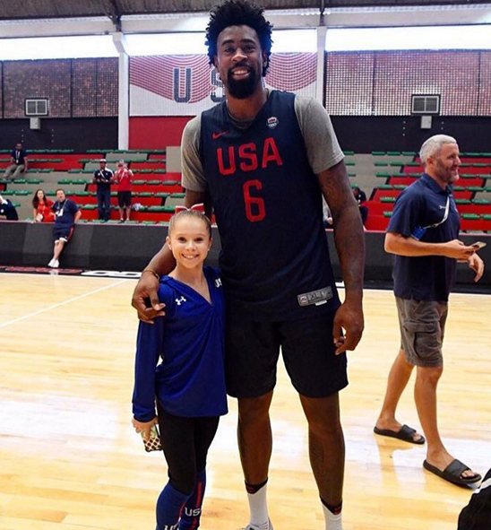 A comparison in sizes - Team USA Basketball Player Deandre Jordan (2.1m / 6'11") and Gymnast Ragan Smith (1.37m / 4'6")