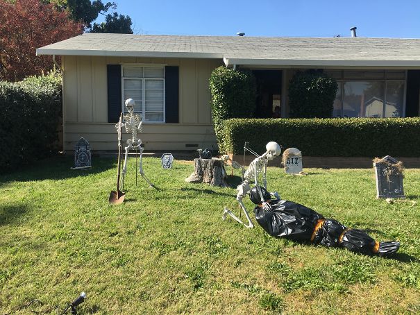 When I was a kid we knew that Halloween was something the Americans did, that the kids there threw a bedsheet over themselves and pretended to be ghosts and that they went to the neighbours to score lollies in a ritual they called trick or treat. Today the village is global and we, along with a lot of other countries, have adopted many of the customs previously considered American. Kids here now go tricking and treating and dress up in Halloween outfits, some quite elaborate. We still have a long way to match the Seppos in Halloween house decoration, however, as these pics from website Bored Panda show . . .