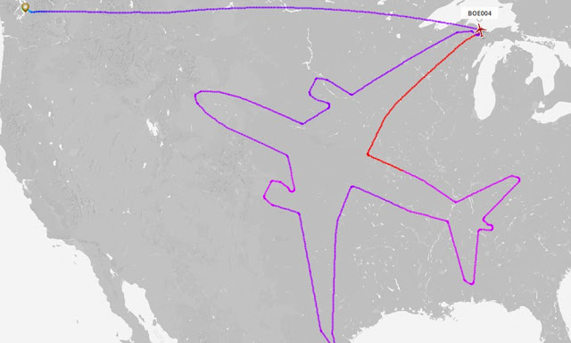 This is not the first time that a pilot has drawn shapes and written words using flight paths, even Boeing’s debut of its 787 Dreamliner featured a massive self-portrait over the United States: