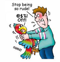 David tried hard to change the bird's attitude and was constantly saying polite words, playing soft music, anything that came to mind. Nothing worked. He yelled at the bird, the bird got worse. He shook the bird, and the bird got madder and ruder.
